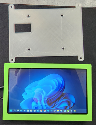 위 처럼 3D프린터로 샘플 제작 후, 실제 사용할 모니터와 전원장치를 공급하여 TEST를 진행합니다.