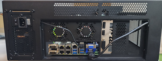 후면 상단에 쿨러 부분은 AI, GPU , CPU등 높은 클럭의 제품들의 열을 효율적으로 밖으로 방출하기 위해서 쿨러2개를 장착하여 제품이 열에 의해 손상되는 것을 보안하였습니다. (추가 원하시는 부품이 있으시면, 설계 수정 가능합니다.)