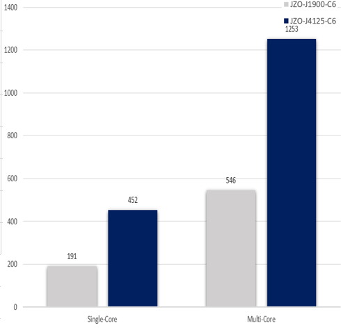 "JZO-J4125-C6" 보드의 CPU는 4코어 4스레드로 기본2.00GHz에서 최대 2.70GHz의 속도를 낼 수 있습니다.