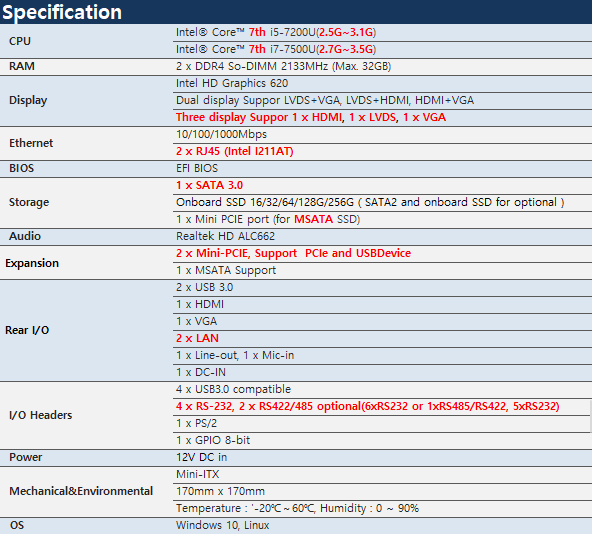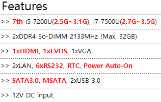 JPS-TOP7-C6L2 제품은 장착된 CPU i5-7200U, i7-7500U에 따라 두 가지 제품이 있습니다.