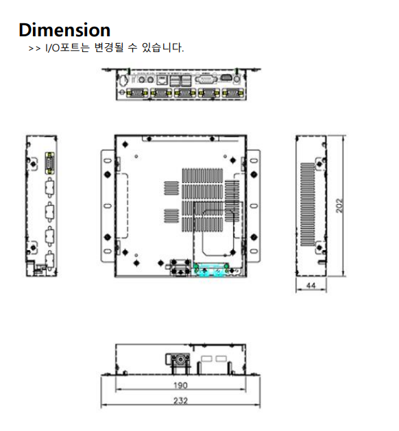 PC의 크기는 190mm(브라켓 장착시232mm) x 202mm x 44mm로 제작되었습니다.