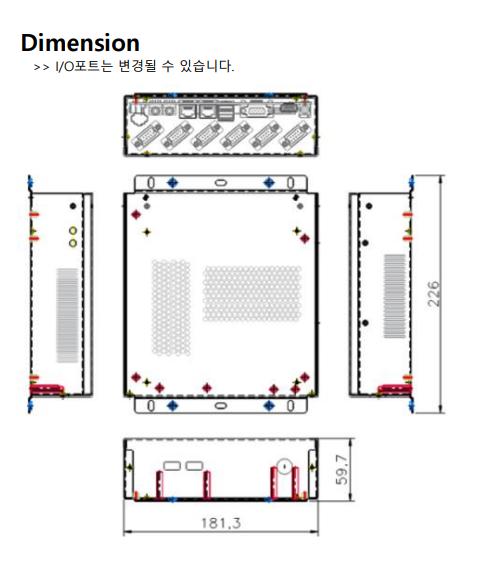 PC의 사이즈는 181.3mm x 226mm(브라켓포함) x 59.7mm 로 제작되었습니다.