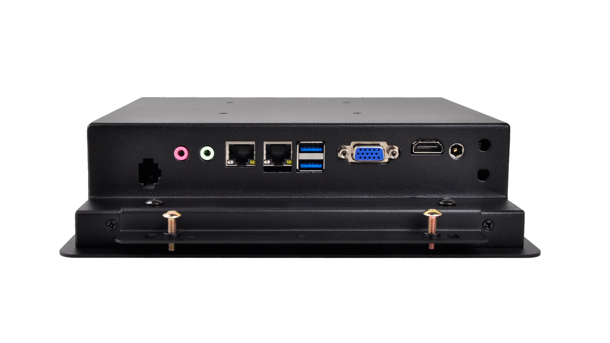 이에는 12V DC in, HDMI, VGA, USB 3.0 x2, LAN포트 x2, 마이크와 스피커 단자가 포함되어있습니다.