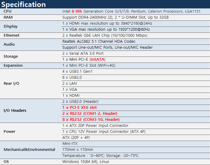 >> DDR4-2400MHz 2xU-DIMM Slot, Up to 32GB
