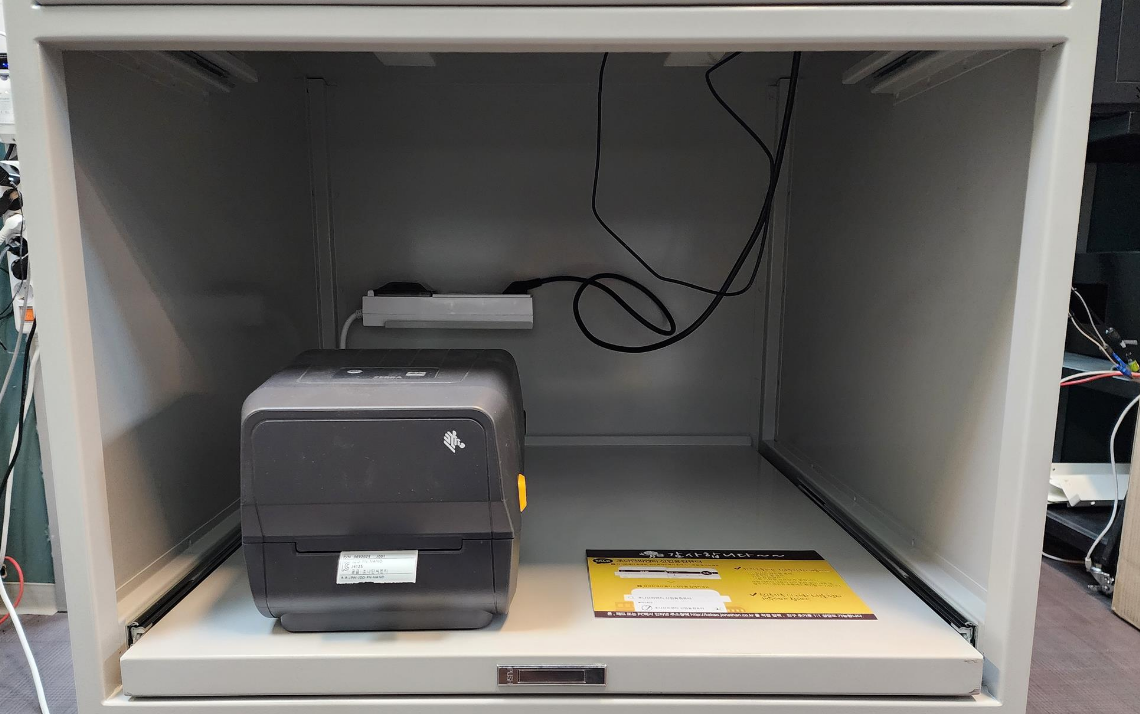 - 중단 선반: 이 공간에는 영수증 프린터, 바코드 프린터 등을 설치할 수 있으며, 내부에는 멀티 콘센트가 장착되어 있어 다양한 기기를 동시에 사용할 수 있습니다.