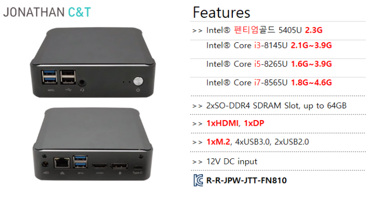 JTT-FN810은 공간 효율성과 성능을 모두 고려한 초소형 폼팩터 기반의 산업용 미니 PC입니다.