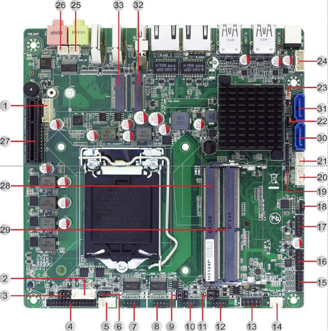 Other Ports 8 * GPIO1 * Port80 Debug Header1 * CPU FAN Header2 x LAN1 * System FAN Header1 x DC-IN1 * AT or ATX Select Jumper1 * Front Panel Header (PWR-ON+RST+HD LED+PWR LED)2 * RS232 (COM1/2, Full lanes, Header)2 * RS232/485 (COM3/4, Full lanes, Header)