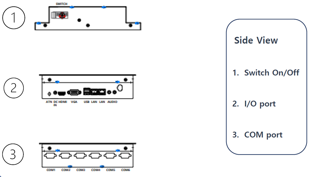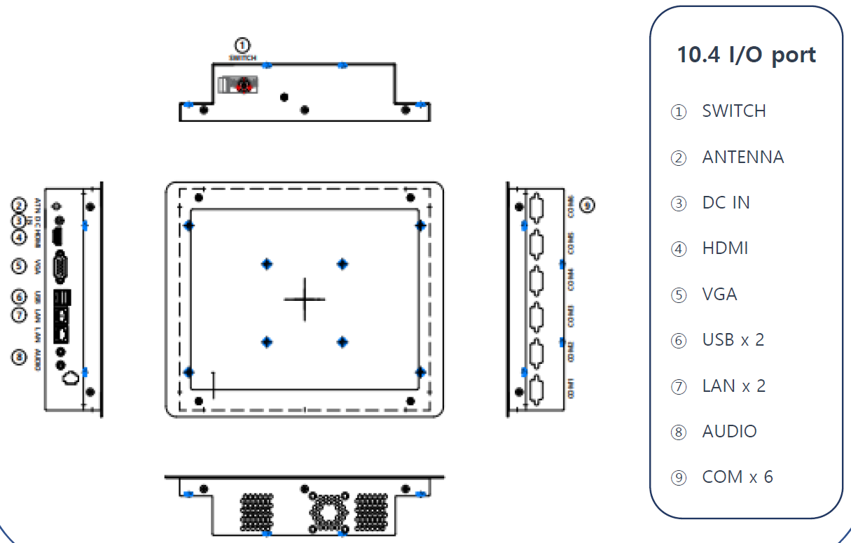 10.4인치 판넬pc 후면부I/O 10.4인치 판넬피씨 도면 10.4 인치 일체형 판넬피씨 도면, 사양서 링크첨부 (...
