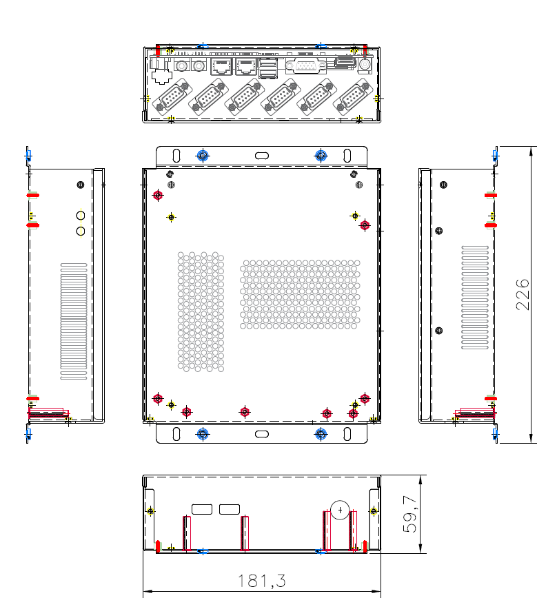 LAN*2 , COM*6 , USB*4 로 구성 된 케이스 도면입니다.