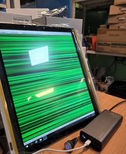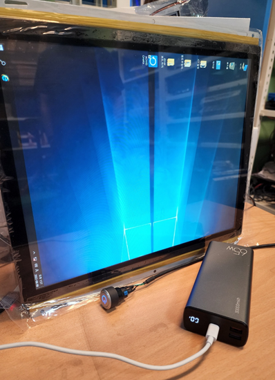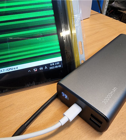 오늘 테스트한 내용은 보조배터리를 사용하여 판넬피씨(PPC)를 가동해 보았습니다.