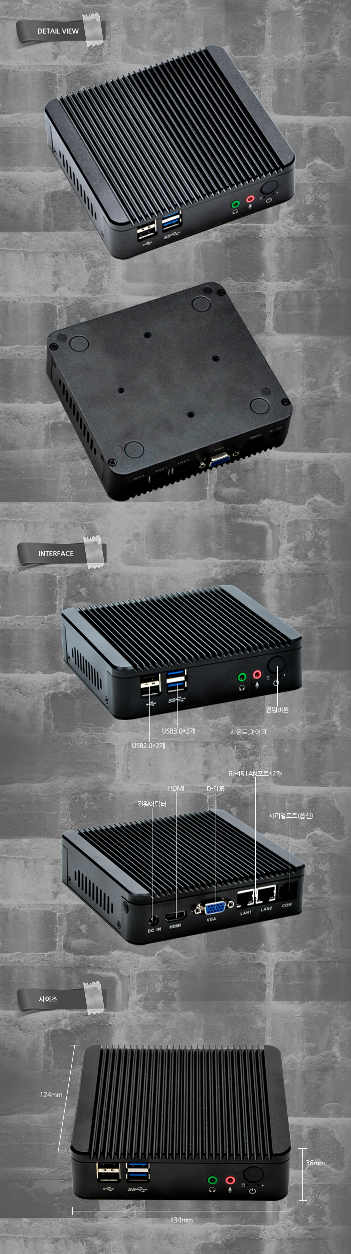 | 확장슬롯포트 | 1 x MSATA / 1 x Mini-Pcie / 2 x LAN / 2 x USB2.0 / 2 x USB3.0 / -5ºC~45ºC | |