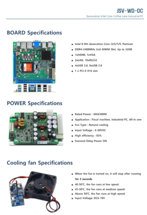 메인보드와, DC TO 300D , 온도센서 쿨러 사양서 입니다.