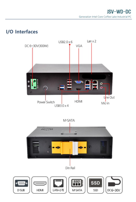 I7-9700 CPU를 사용하며, 전원은 DC24V를 사용합니다.